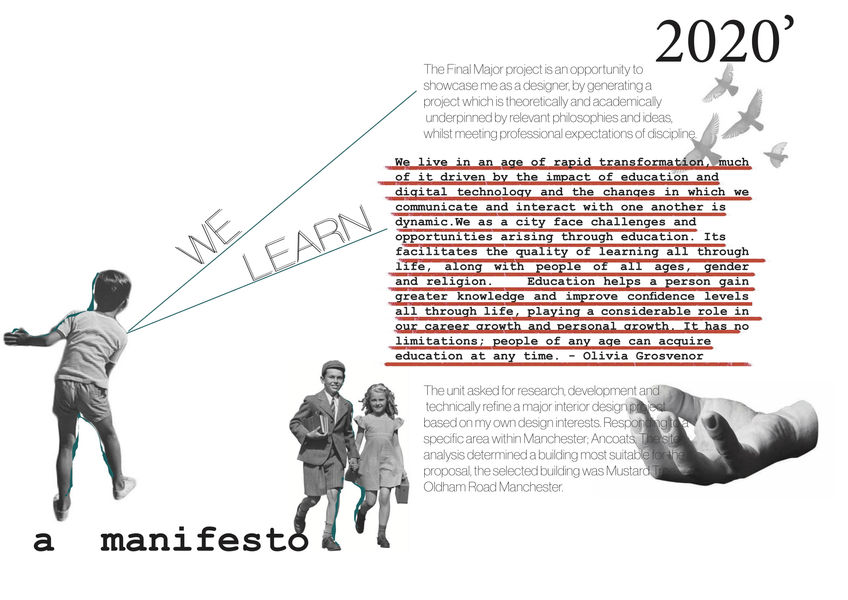 We Learn is focused upon encouraging extra learning and educational skills and facilities in order, to provide further education to the residents of Ancoats ‘Manchester. The scheme’s aim is to create a strong sense of ownership for the residents and staff at ‘We learn’. The building facilities and encourages spontaneous social interactions and educational collaborations between a diverse age range, inspiring ideas and gaining new skills. We Learn provides an educational environment, where the community can learn new skills through educational programmes and open creative workspaces. We Learn provides a solution for the lack of educational facilities available in Ancoats, nether the less We Learn provides educational spaces, which will be achieved by incorporating a contemporary amphitheatre and modular seating style of stairs and seating, which will connect the ground and first floors together, providing comfortable seating and encouraging social interaction within the space of We Learn.